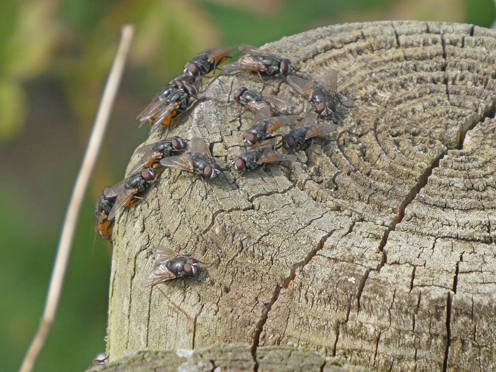 These flies are Face Flies Muscari autumnalis or at least I’m fairly confident that they are. Hickling is a dairy village with next to nothing in the way of arable but several fields of rye-grass leys for sileage. Face Flies pester cattle by feeding on secretions from around the eyes though these were just enjoying the warm sunshine after a long hibernation.